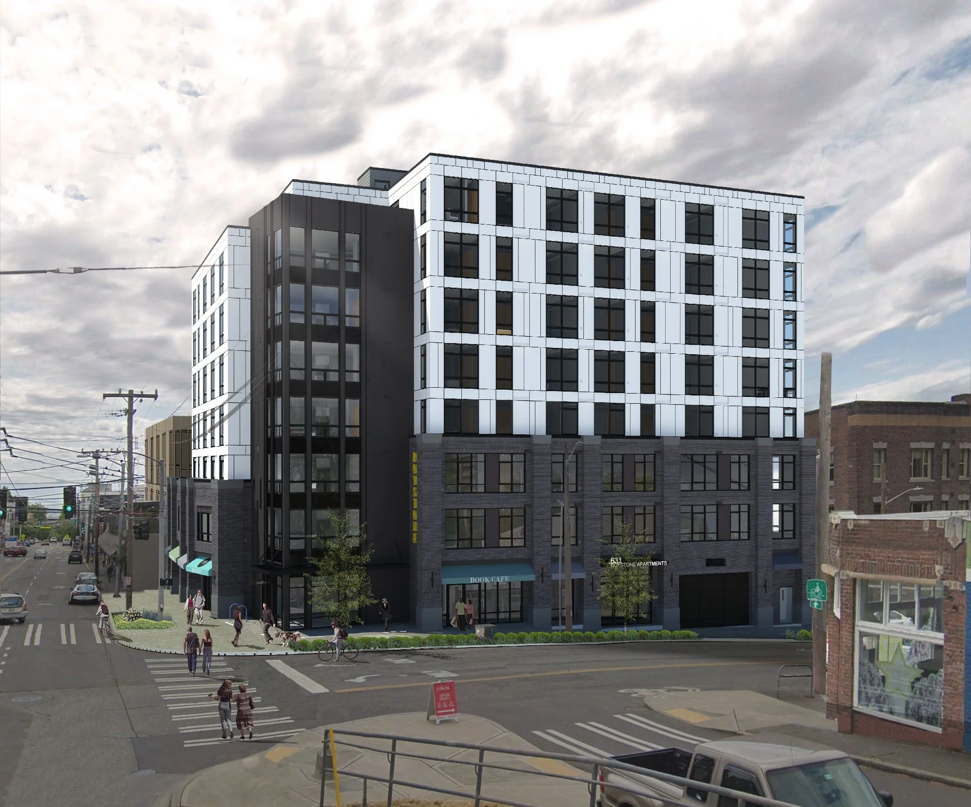 Construction continues on the Roystone Apartments, an eight-story mixed use apartment building in Seattle’s rapidly developing Lower Queen Anne neighborhood. Completion expected in 2022.