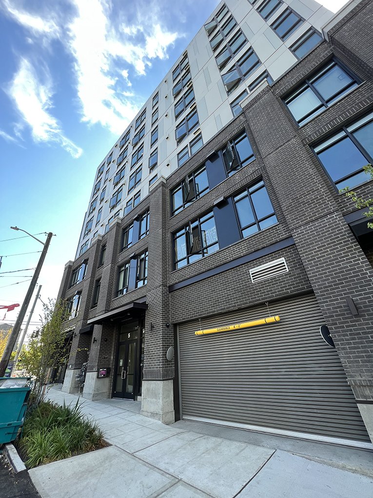 The eight-story building encompasses approximately 260,000 square feet and includes 395 residential units, three ground-floor retail spaces, a rooftop amenity deck, and two levels of urban courtyard spaces. The design also incorporates a double-stacked automated parking system to efficiently accommodate vehicle storage within a constrained urban site. A defining feature of the project is its approach to affordability, with designated affordable housing units provided on site rather than through contribution to the city’s housing fund. The site’s proximity to downtown Seattle, public parks, multiple light rail stations, and an extensive regional bike path network supports sustainable transportation and reinforces the project’s role within a growing, connected neighborhood.