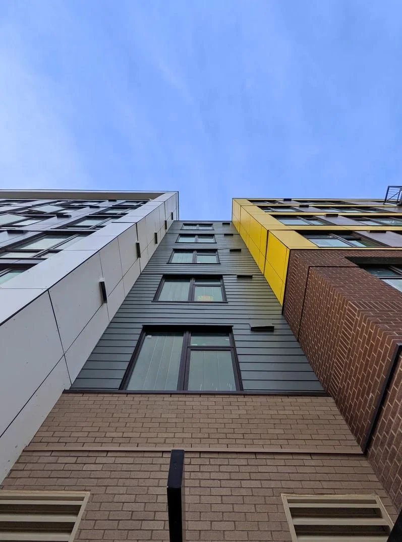 The building was the first to implement JMA’s reconfigurable modular kit of parts, enabling rapid iteration and adaptability for future sites. The design employs a double loaded corridor spine and a single I-shaped form that responds to the curved right of way and angular site conditions through rotated façade massing. Technical strategies included shared wet wall construction, simplified MEP routing, integrated accessible unit layouts, and a drag strut structural system that eliminated the need for hold downs. Completed during the COVID-19 pandemic, the project maintained a focus on cost efficiency and workforce affordability while advancing modular construction innovation.